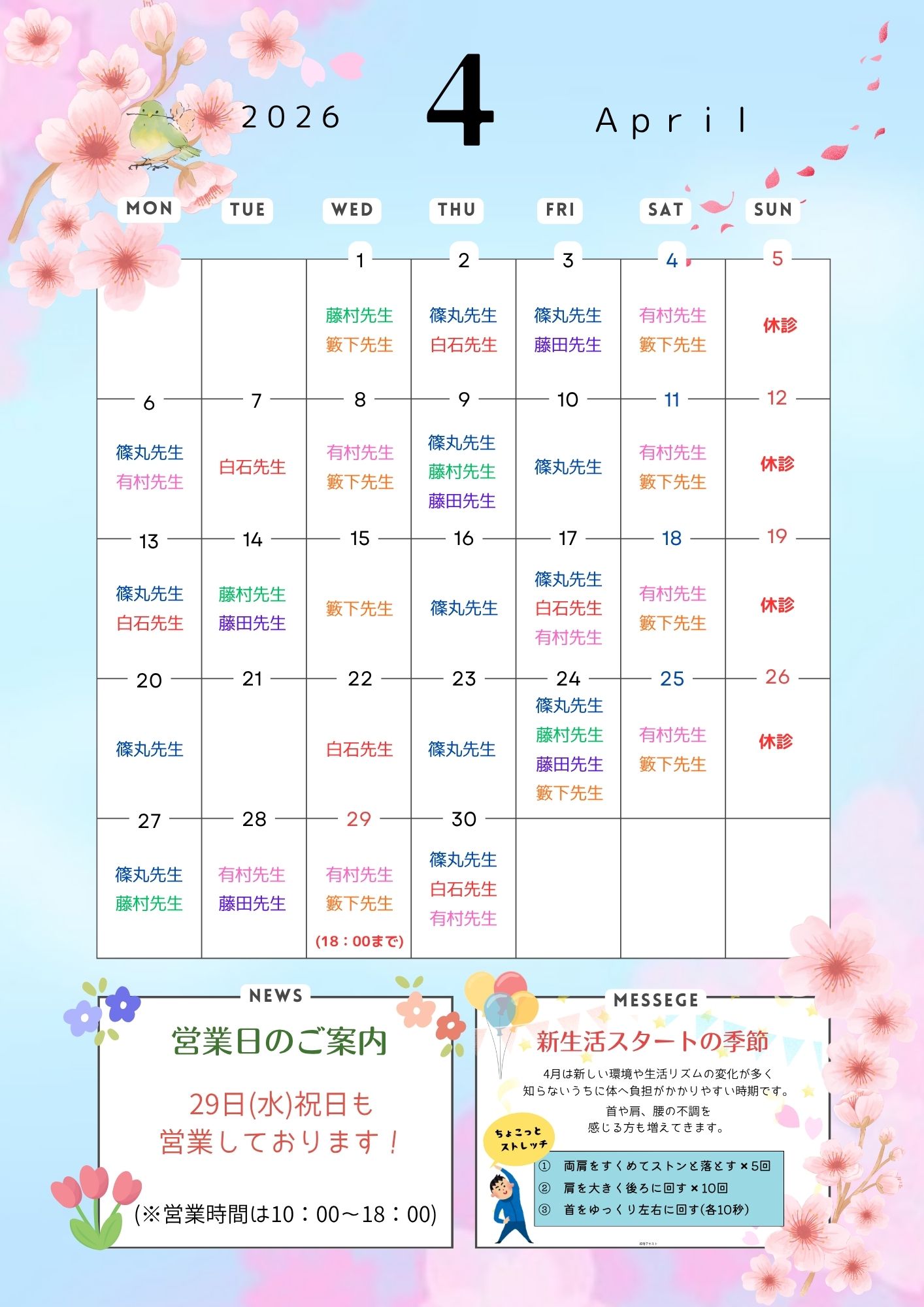 4月カレンダーをご案内します!