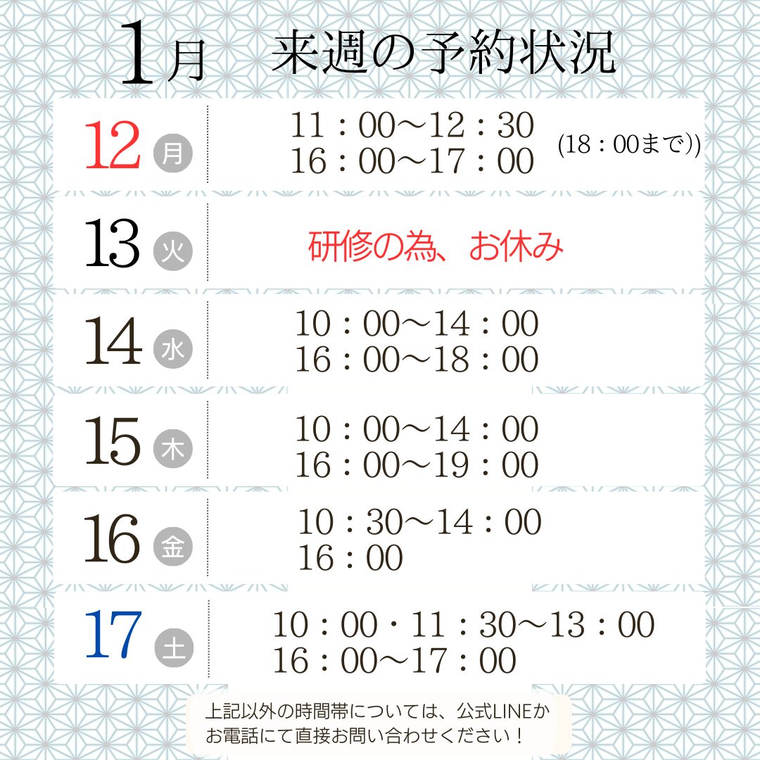 ※当日キャンセル等もありますので、下記日時以外にも空いている時間帯がございます。